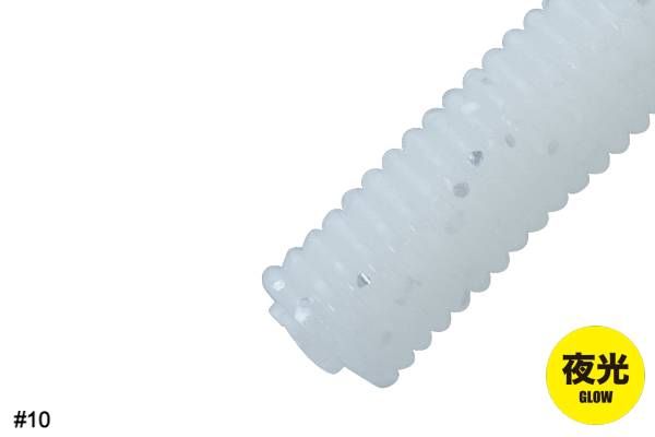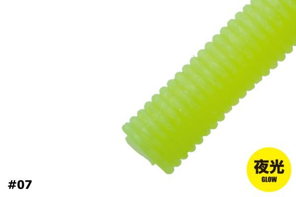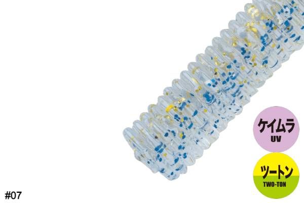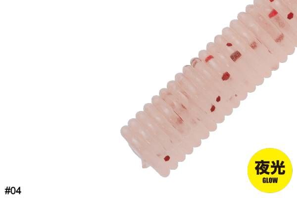 Un vinilo para ajing prácticamente articulado. El cuerpo está compuesto por segmentos de distinto grosor y anchura que le brindan mucha movilidad. La cola tiene un movimiento sinuoso y se dobla fácilmente en el momento en que el jurel absorbe el señuelo de vinilo.