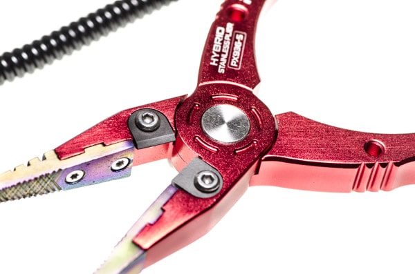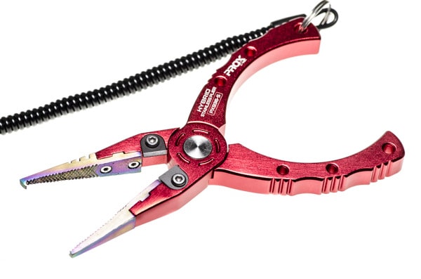 Unos alicates abre anillas totalmente de acero inoxidable tienen sus ventajas, pero también el inconveniente del peso, mientras unos exclusivamente de aluminio tendrán otros pros y contras. En el caso de los Hybrid Pliers de Prox se han combinado para conseguir un cuerpo ligero gracias al aluminio y un pico muy fuerte, totalmente de acero inoxidable. Para las lamas de estas pinzas de pesca se ha elegido el tungsteno que es duradero y con un filo que aguanta muchos cortes de trenzado, monofilamento, fluorocarbono o acero de pequeño diámetro.