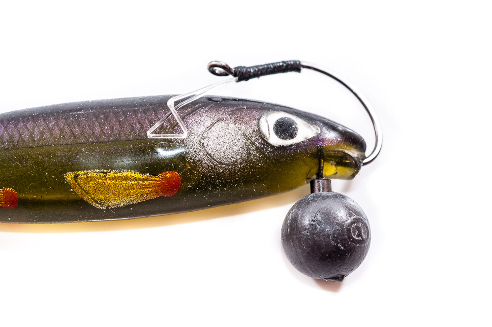 El Drop Shot Weedless Hook de OMTD es un anzuelo simple para montaje vinilo estudiado para la pesca en drop shot, wacky con plomo insert por ejemplo y para montajes como el que proponemos en las fotos. Por cuanto pueda resultar bizarro, funciona de manera sorprendente porque hace bajar el vinilo como un misil y lo deja trabajar casi como un jika rig.