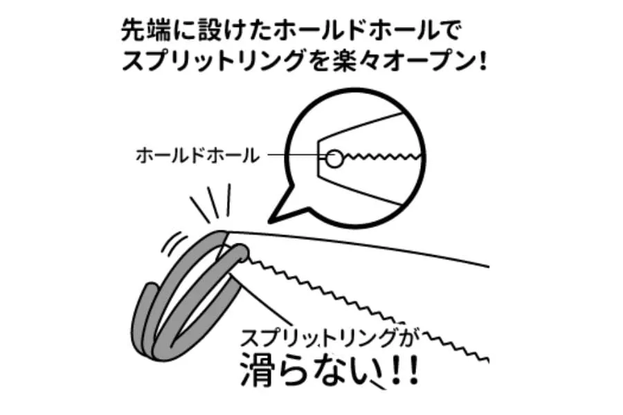 Lo curioso de como funciona este alicate para pesca es que el pico, no es como el habitual. Con los Deka Ring Pliers, una vez agarrado el alambre de la anilla que quieres abrir, en lugar de aplastar, para que el pico lo abra, tienes que tirar. Si te fijas, en la punta del alicate no hay ese pico de loro que todos conocemos. En su lugar hay dos ranuras, que son las que agarran el acero de la anilla.