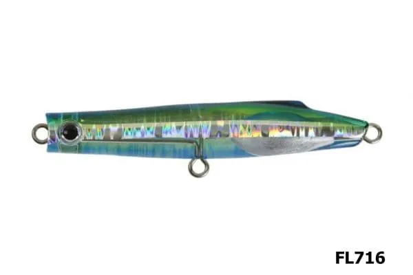 Si me preguntas para qué especies sería adecuado, este pencil popper te podría contestar vagamente. Sin embargo, se me ocurre que podría ser uno de los señuelos más interesantes para las serviolas. Yo, sin duda, lo metería primero en la lista para esta especie. Evidentemente, es perfecto para la anjova y el palometón o para atunes y bacoretas. Por el Estrecho puede hacer mucha pupita, en el Delta ni te cuento o por la zona de Huelva. Ojo con la transparencia del cuerpo, da mucho el pego. El reflejo de los hologramas internos, destella como fuegos artificiales.
