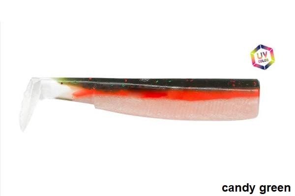 Nos parece interesante el diseño del cuerpo, muy sencillo y, sin embargo, bien realizado. La parte del tronco del vinilo shad es robusta y la cola muy flexible, que se traduce en una acción en el tercio posterior, como un pez real, que espera ser atacado por una lubina.