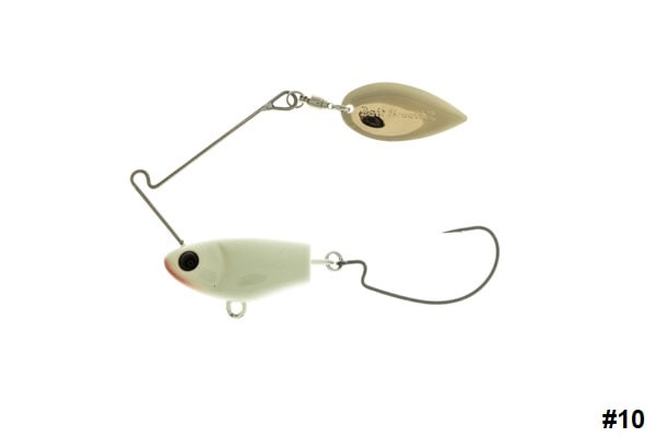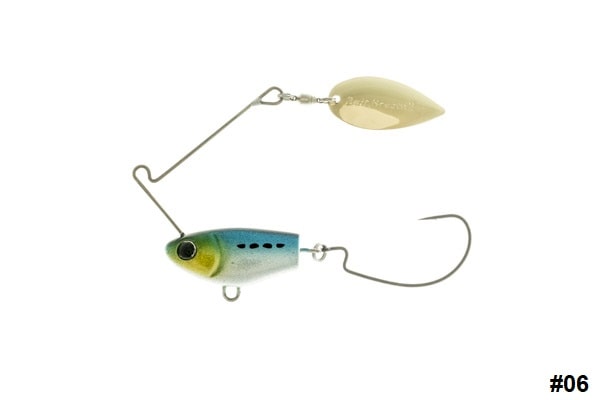 Atención, el Cherry Spin de Bait Breath es como un spinnerbait, pero sin faldita, depilado, digamos. La gran diferencia es que el anzuelo es móvil e intercambiable y esto nos permite acoplarlo con lo que realmente nos da la gana. Con móvil queremos decir que no está soldado dentro del cuerpo del spinnerbait, sino que está conectado con una anilla al cuerpo. Esto le deja fluctuar y desarrollar un movimiento mucho más natural.