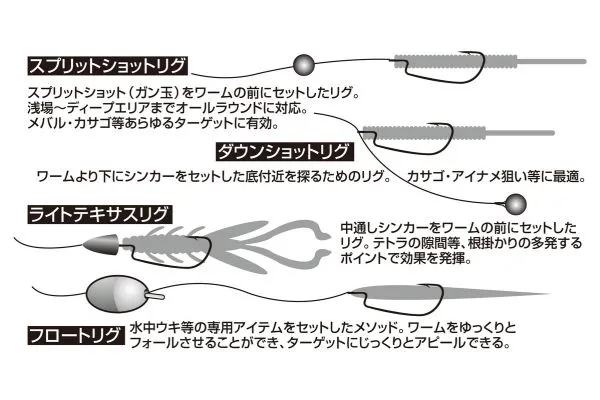 Los anzuelos offset Decoy Mini Hook MG-1 son perfectos para split shot rigs, down shot rigs, y light Texas.