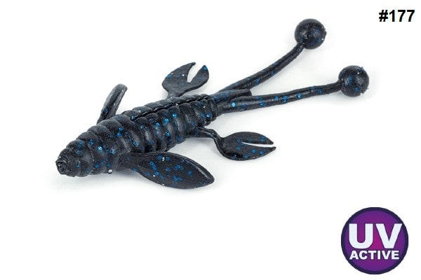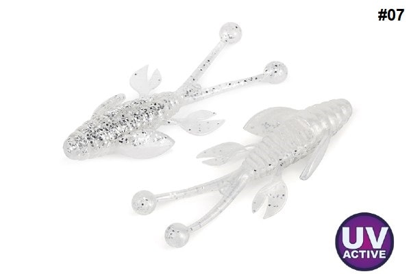 En caída baja muy poco desapercibida, esas alitas que tiene al lado del cuerpo no paran de vibrar, así como las pinzas y las dos esferas de las colitas que llevan el mismo concepto de la Freaky Rock de 2”. Se cargan de aire y se mantienen siempre elevadas con respecto al resto de los cangrejos de vinilo pesca.