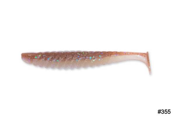 Si te fijas, las protuberancias del cuerpo tienen una disposición diagonal y la cola un diseño peculiar. Ambos diseños llevan a que este vinilo shad se balancee con un "rolling" estrecho.