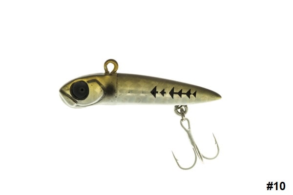 Desde luego el vibrátil Gold One no es una chapita de metal y plomo, esto habría sido sencillo y a estos ingeniosos japoneses no les gustan las cosas llanas. Así que se han estrujado el cerebro para combinar el lastre necesario con plástico, o resina, quizás. Englobando una robusta armadura, muy sobredimensionada para la pesca, por la cual está destinado este pez artificial.