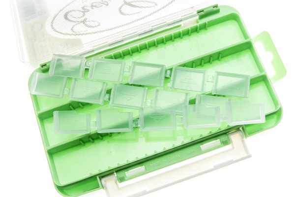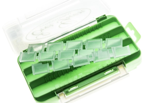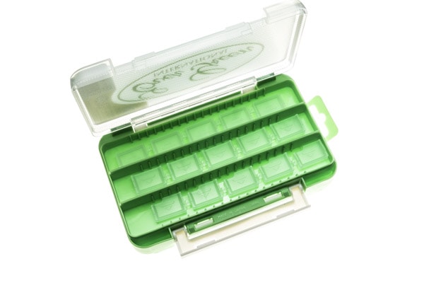 La Inner Box Reversible de Evergreen es la caja para señuelos de pesca perfecta para el maniático del orden. Dos secciones, quince divisorios en cada uno de los dos lados, todo compactado en un tamaño perfecto para cualquier chaleco o riñonera.