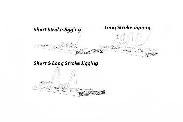 En acción, el JigPara Vertical Slow Pitch, se desliza durante la caída enseñando sus puntos débiles, destellos, flancos y vibraciones. Todos elementos que suman a la hora de despertar el apetito de los depredadores que circulan por el arcén en espera de pitanza. Finalmente, se deja trabajar en short stroke y en long stroke, es decir, con tirones más cortos y seguidos, o más largo, que buscan pausas o una mezcla entre los dos.