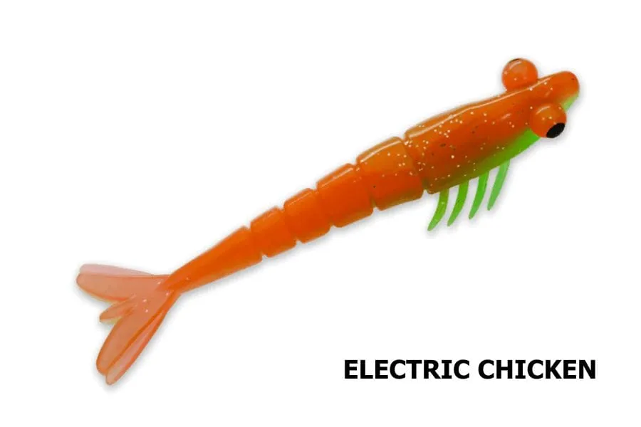 Una gamba no nada descompuesta, el caparazón le limita los movimientos laterales, exactamente como a este señuelo de goma. El Shrymp de Jyg Pro fishing resultará muy natural a los depredadores. Un objetivo claro, al que atacarán sin hesitación. Además, es una gamba, vamos que junto al choco y al calamar es un caramelo.