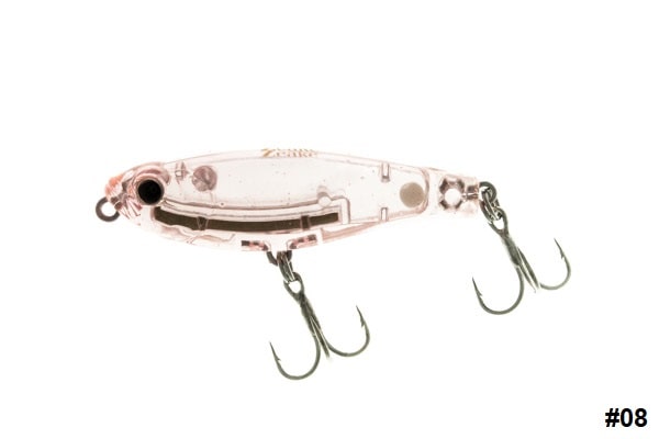 Tenemos un paseante hundido rockfishing con algunas peculiaridades, por ejemplo, el lastre no es una bola de plomo o tungsteno sino una tira de latón que juega muy bien con las transparencias del Legra Pencil. Le otorga una sensación de estructura ósea. Además, en el interior del cuerpo encontramos una pequeña bolita de material plástico fluorescente que emite un sonido muy leve y que se mueve como una loca. Durante la recuperación, emite señales inequívocas para los depredadores que cazan en condiciones de poca luz.