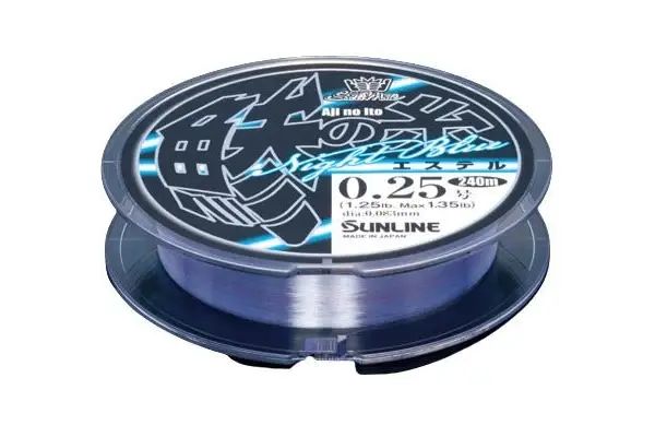 Al grano, el Sunline Saltimate Aji No Ito Ester es en color Night Blue, azulado para entendernos, y no es una casualidad que Sunline haya elegido este color. Es el que mejor se comporta para reflectar tanto de noche cuanto de día y permitir ver siempre donde está nuestro señuelo. El uso de polyester - que hay que recordarlo - es un hilo que está disponible en diámetros muy finos, cambia completamente el lance en la pesca ultraligera, ya que escurre muy bien en las micro anillas de una caña de ajing.