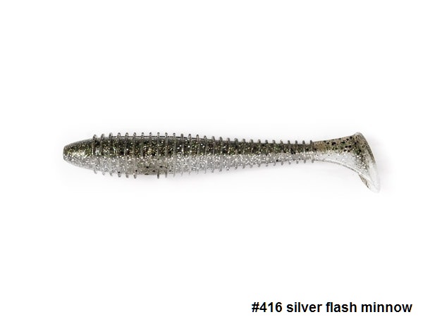 Igual que otros vinilos Keitech está fabricado con un proceso de doble inyección que inserta en el molde silicona de diferente densidad y salinidad. Las razones que le permiten de nadar perfectamente estable a cualquier velocidad.