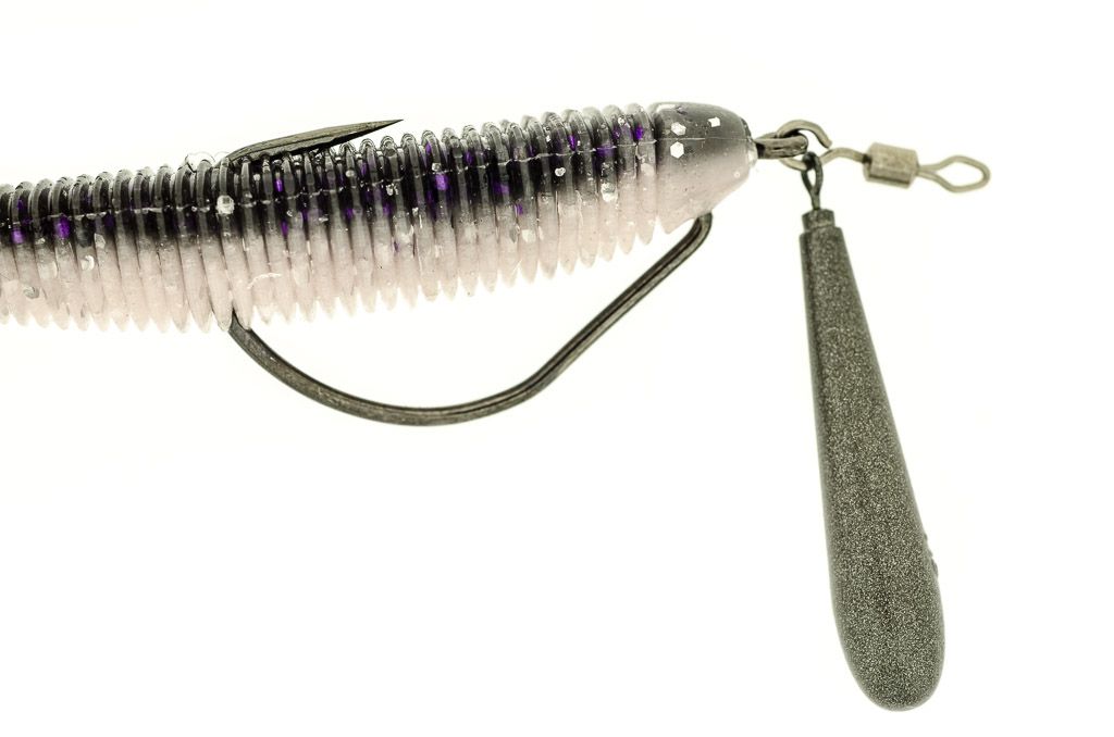 El anzuelo cabeza plomada Zero Dan te brinda la posibilidad de bajar rápidamente el vinilo al fondo sin por ello perder sensibilidad y acción. Al tener el plomo separado del anzuelo y al estar juntos por un giratorio, ambos conservan total libertad.